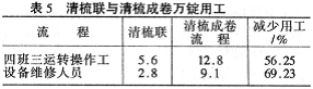 提高企业效益,一是要提高产品质量和档次,二是要提高劳动生产率。减员增效是企业走出困境的一条出路。而采用清梳联技术是纺织企业减少用工的措施之一。经统计计算,清梳联与清梳成卷流程万锭用工如表5所示。