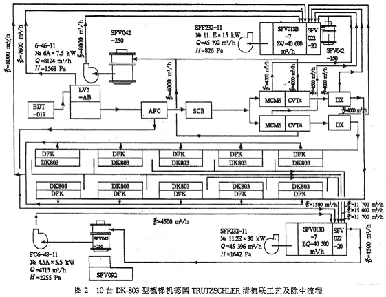 5.210台DK-803型梳棉机德国TRUTZSCHLER清梳联工艺及除尘流程特点(图2)