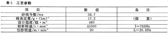 2转杯纺纺纱器配置及工艺参数