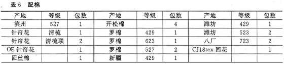 3.1配棉(见表6)