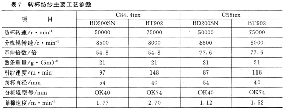 3.3转杯纺纱机主要工艺参数(见表7)