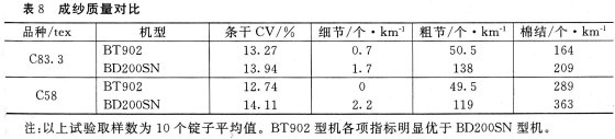 3BT902型机与BD200SN型机纺纱对比