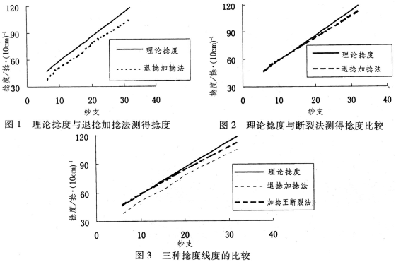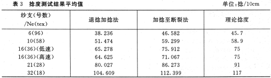 由图1可见,通过退捻加捻法所测得的捻度值同理论捻度值进行比较,存在明显的差异。