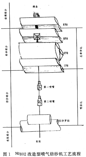 2№802改造型喷气纺纱机工艺流程简图(见图1)