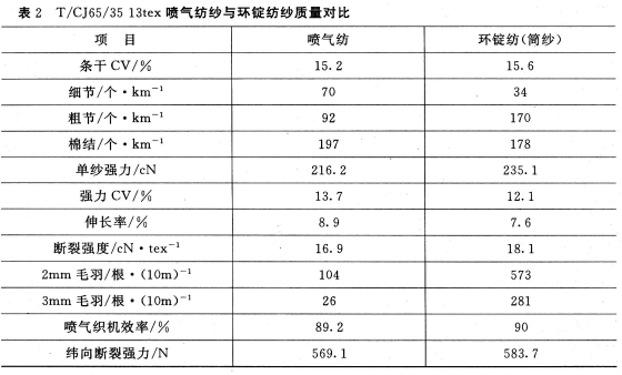 (1)喷气纱的强力较低,单强CV也稍大,但完全可以满足喷气织机的要求。