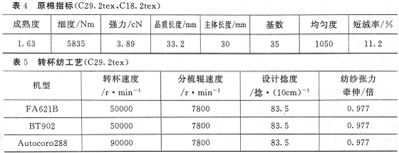 2.2C29.2tex(0E)、C18.2tex(OE)纱纺制