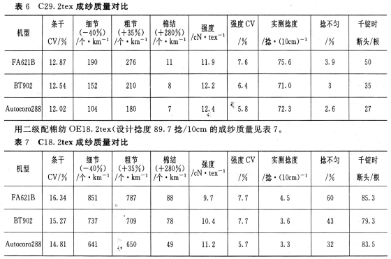 总之,Autocor0288型机相对FA621B型、BT902型机来说,最大特点是转杯速度高、产量高、纱线毛羽少,成纱质量稳定。8台Autocor0288型机的投产给我公司带来了可观的经济效益。