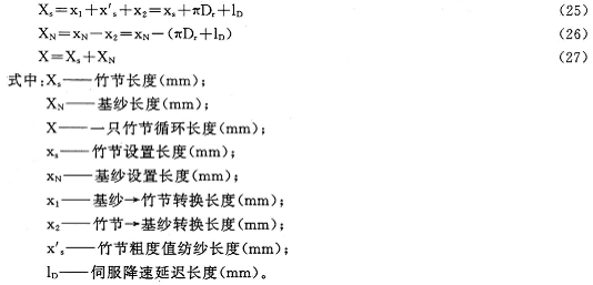 这是一种最为常见的设置方案,从图5关系中不难得出实际竹节长度和基纱长度值为: