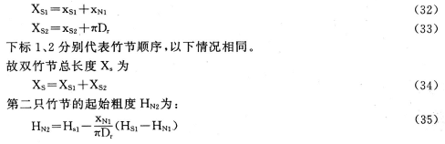 而由公式(25)计算的竹节理论长度Xs为: