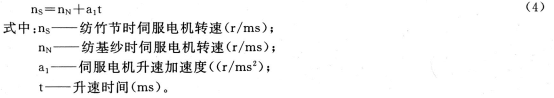 同理,假如伺服电机在竹节一基纱转换初期是以等减速加速度完成速度切换,那么: