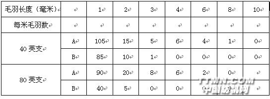 注:表中A-普通环锭纱B—紧密环锭纱。紧密纺环锭纱的拈度比普通环锭针织纱捻度低10%