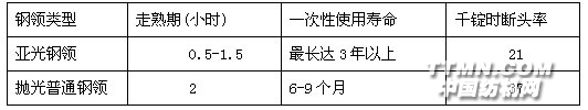 3、陕西省纺织研究所研制开发的镀氟钢丝圈使用寿命达到1个月以上,比一般钢丝圈的使用寿命7-10天要高许多倍,纺纱稳定期较长,对减少毛羽、降低细纱断头有显著作用。加长了钢领钢丝圈之间配合的稳定期,对稳定与降低细纱毛羽十分有利。