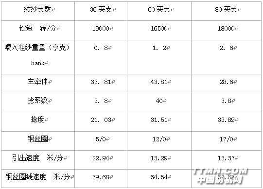 按以上要求准备的纺纱支数,锭速引出速度,喂入支