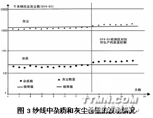 含杂多的纱线对后工序的生产过程会造成影响,假如了解了纱线中杂质含量及分佈情况,对后道的漂洗工序非常有帮助,在后整理阶段,纱线或织物中植物污染物,要在98℃氢氧化钠和其它化学助剂的混合液中加以去除,如果预先知道污染的程度,就可以相应地通过调整漂液的浓度和漂洗时间对漂洗过程进行控制。
