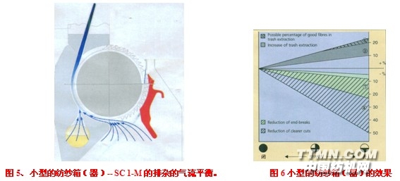 图6中 ①、尽可能减少排出杂质中好纤维可能占的百分比;②、排出杂质数量的增加;③、断头率减少;④、电子清纱切断次数减少.