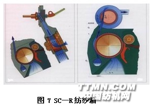 SC-R纺纱箱是R40转杯纺纱机的心脏(图7),比R20型转杯纺纱机的性能有很大改进运转稳定,新型纺纱机器人将自动接头与换筒功能联合在一起,经过多年运行后,证明具有最佳的性能。是当代先进高科技的转杯纺纱机。我们称它为高挡转杯纺纱机。R40转杯纺纱机应用SC-R新型纺纱箱的优点也具有调节“BYPASS”功能;