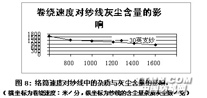 ⑴、以106tex(Ne5.6、Nm9.5)纱及7tex(Ne6.75、Nm11.5)转杯纱为例:若转杯纱纺纱器清洁设置比较理想,纺纱后 106tex(Ne5.6、Nm9.5)转杯纱的灰尘含量可减少81%;87tex(Ne6.75、Nm11.5)纱灰尘含量