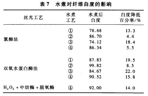 ③ 丝光工艺采用脱氧酶,有效降低后续高温湿热情况下的黄变程度,而对强力的影响不大。