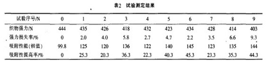 1.3.2 丝光工艺条件对织物吸附性能的影响根据表2试验结果按照吸附性能进行统计分析.结果如表4所示。