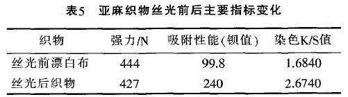 亚麻织物丝光前必须具有比产品标准高的强力(一般大于295 N).以避免因丝光使织物强力指标不合格而降等。