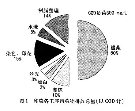 棉及棉型织物的传统退浆、精练和漂白等前处理工艺路线长、碱耗大、能耗高和污水处理负担重。该阶段的能耗、水耗和排放的废水占总印染加工的60%左右。印染行业前处理废水 COD值约占印染行业COD排放