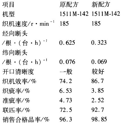 (4)织造开口清晰度得到改善,经向断头下降,织机效率上升12.5个百分点,联匹率、销售合格品率明显提高,产品质量稳步提升。