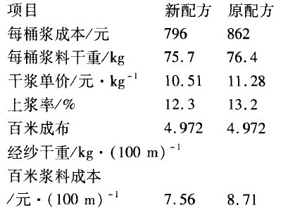 通过浆料成本对比可知,新配方比原配方百米减少1.15元(用浆效率按85%计算)。