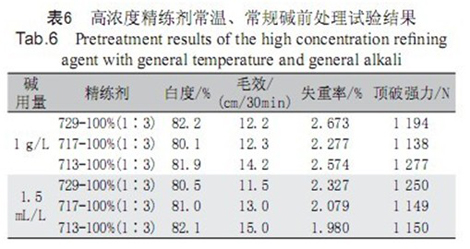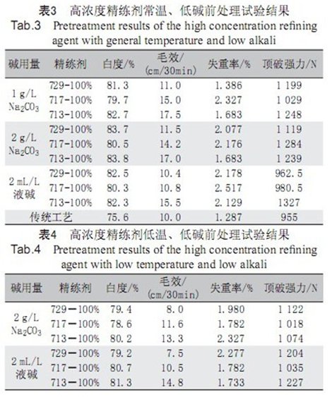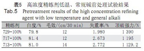 2.4 3种高浓度精练剂低温、常规碱前处理试验结果