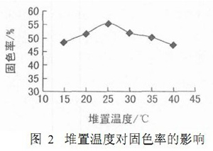 由图2看出,亚麻织物冷轧堆染色的最适堆置温度在25℃左右。为了减少车间环境温度变化的影响,可施加简易温控,以达到较高的固色率。