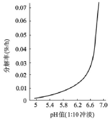 (1)双氧水的稳定性与溶液的pH值、温度以及催化剂、阻化剂有关。纯双氧水的稳定性和pH值的关系如图3-1所示。从图中可以看出,双氧水在酸性条件下比较稳定,当pH值为5时开始分解,pH值接近7时,分解曲