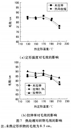织物定形时,纬向拉伸扩幅会影响织物的毛效,其