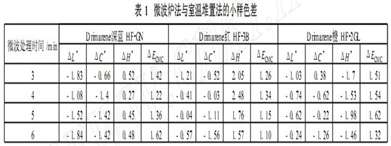 尽管微波炉法试样能够接近室温堆置法试样的表观颜色深度,但其颜色的差异通过肉眼就可以明显看出,如表1所示。