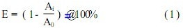 上染百分率采用残液比色法测定。在UV21800紫外可见分光光度计上测定染色前后染液的吸光度A0和A,上染百分率E/%按式(1)计算: