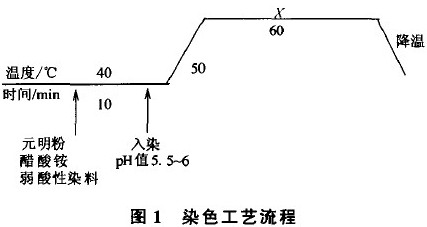 弱酸性染料上染羊毛的工艺流程如图1所示,图中x为40、50、60、70、80、90 ℃