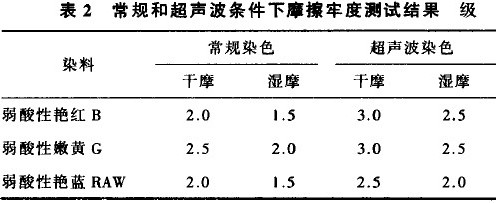 ③ 在超声波作用下,低温条件染色时可以明显提高纤维的耐摩擦牢度。