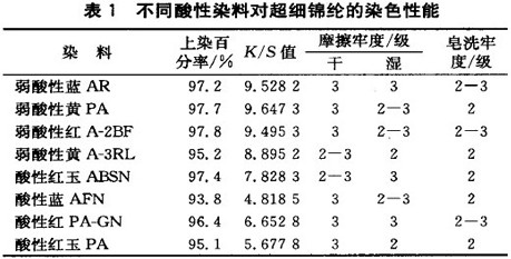 选用不同酸性染料染色结果见表1。