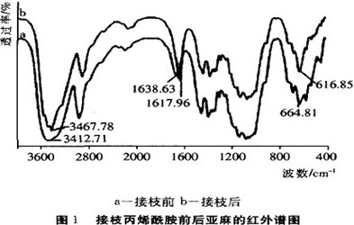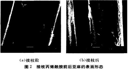 (1)染色试验、红外光谱分析及接枝前后SEM表面形貌观察结果都从不同侧面证明亚麻表面发生了丙稀酰胺接枝。