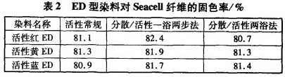 不同染色工艺下ED型活性染料在对Seacell纤维的固色率见表2。