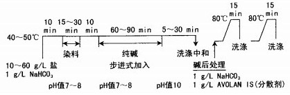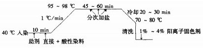 在实际生产中,选择一浴法具有染色工艺简单,流程短,但色牢度有限,主要适用于染浅中色;两浴法染色工艺色牢度高,可适用于浅至深各种颜色,但工程流程长,染色工艺复杂。各厂家可根据实际情况及具体的牢度要求加以选择。