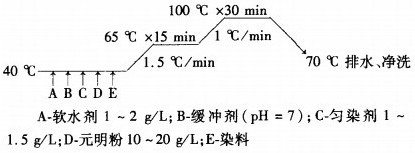 中性染料染锦纶适合在95~98℃染色。高温型活性染料(H—E型)耐热稳定性好,适合在90—95℃吸色、80℃固色,这与中性染料染锦纶的最佳温度相近。如果按高温活性染料的吸色温度(90~95℃)染色,中性染料在锦纶上得色深度的下降幅度不明显。