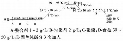 采用分散/热固型活性、中性/热固型活性一浴一步法染锦棉织物中浅色工艺和中性/高温型活性一浴二步法染锦棉织物中深色工艺,特点如下:
