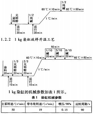 (1)1kg染缸染色采取了与染色大生产完全一致的染色工艺,而化验室复色时由于受设备条件的限制,加料时间不可能与大生产完全一致(如1