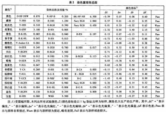 在实际生产中,化验室配方到染色大生产的重现性约为55%。且大量的追加修色还会造成生产原料和能源的浪费,延长生产时间,降低机台的有效利用率。