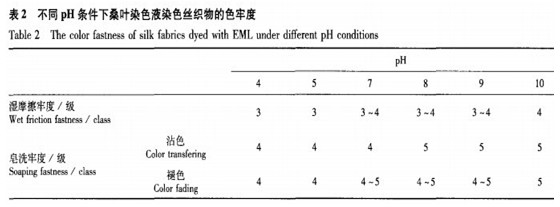 我们在以往的试验中观测到,用碱液提取的桑叶染色液直接染色真丝绸,试样颜色均呈黄绿色,没有红、黑、青、紫等色谱n,因此认为桑叶染色液的提取方法与提取剂组成对染色丝绸的颜色不会有根本性的改变。