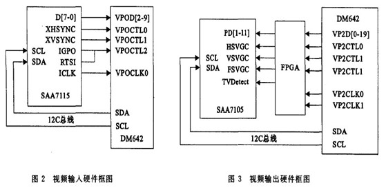 在本系统中,视频编码器SAA7105由DM642通过I2C总线对内部编程寄存器在线设置为PAL制式,将来自FPGA的442编码格式的ITUBT656数字视频流,合成模拟的PAL制式视频信号,送入显示设备显示.