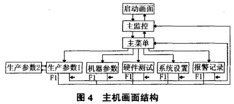 本机的人机界面的画面在编制时将主要操作控制画面集中在一起,各个画面之间的切换都有提示,操作特别方便。各个画面之间的关系如图4所示。