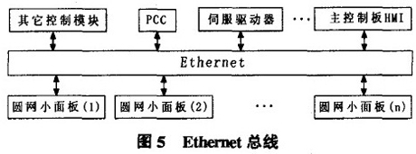 为了使圆网印花机给用户提供一个友好的人机界面,让用户更好地使用、维护和维修,经过不断的技术和市场调研,决定与B&R公司合作研制圆网印花机人机界面控制系统。本机操作部分包括两种硬件面板用来实现对机器的操作和参数显示及设置,一是主控制台上的主控制面板Power Panel PP41,另一种是装在网头上的小操作面板Panel ware(紧凑型HMI),以上控制面板都是B&R公司生产。具体控制框图如图2所示。