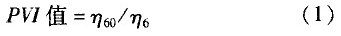 式(1)中,PVI 是印花黏度指数, η60和η6 分别是转速为60 r/min和6 r/min时的原糊黏度。