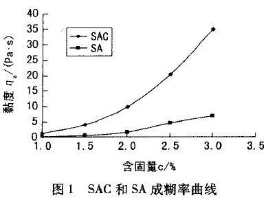 图1所示为SAC和海藻酸钠SA的成糊率曲线。
