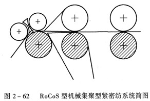 自1999年紧密纺细纱机问世以来,以立达公司的ComforSpin®和绪森公司的EliTe®为代表的气流集聚型紧密纺系统发展极为迅猛,许多国际知名企业纷纷涉足紧密纺领域,推出了自行研制、形式多样的气流式紧密纺细纱机或装置。国内也有大量纺机生产厂商,或自行研制或引进关键技术,投入到气流式紧密纺细纱机的研制开发中。直到2003年,瑞士Rotorcraft公司在ITMA 2003(伯明翰国际纺织机械展览会)上首次展出了自己的RoCoS型紧密纺细纱机,率先创出了一种机械集聚型的紧